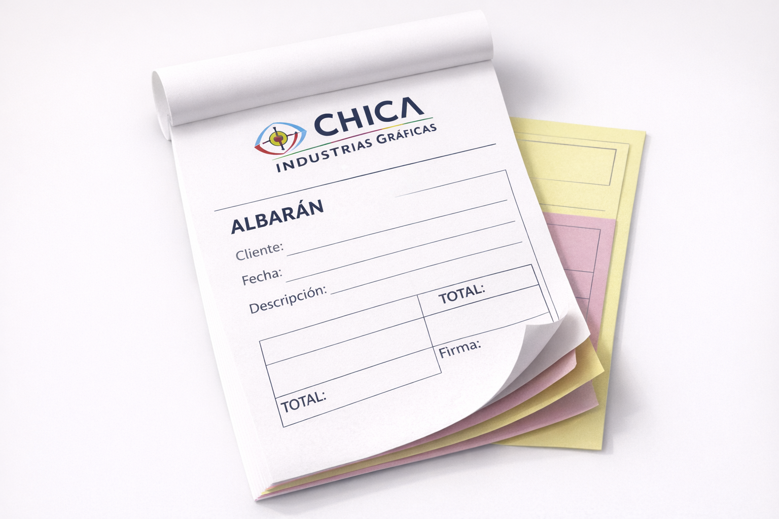 Blocs autocopiativos personalizados ideales para facturas, albaranes, recibos o pedidos. Impresos con tu logotipo y datos de empresa, disponibles en duplicado o triplicado, con diferentes tamaños y opciones de encuadernación.