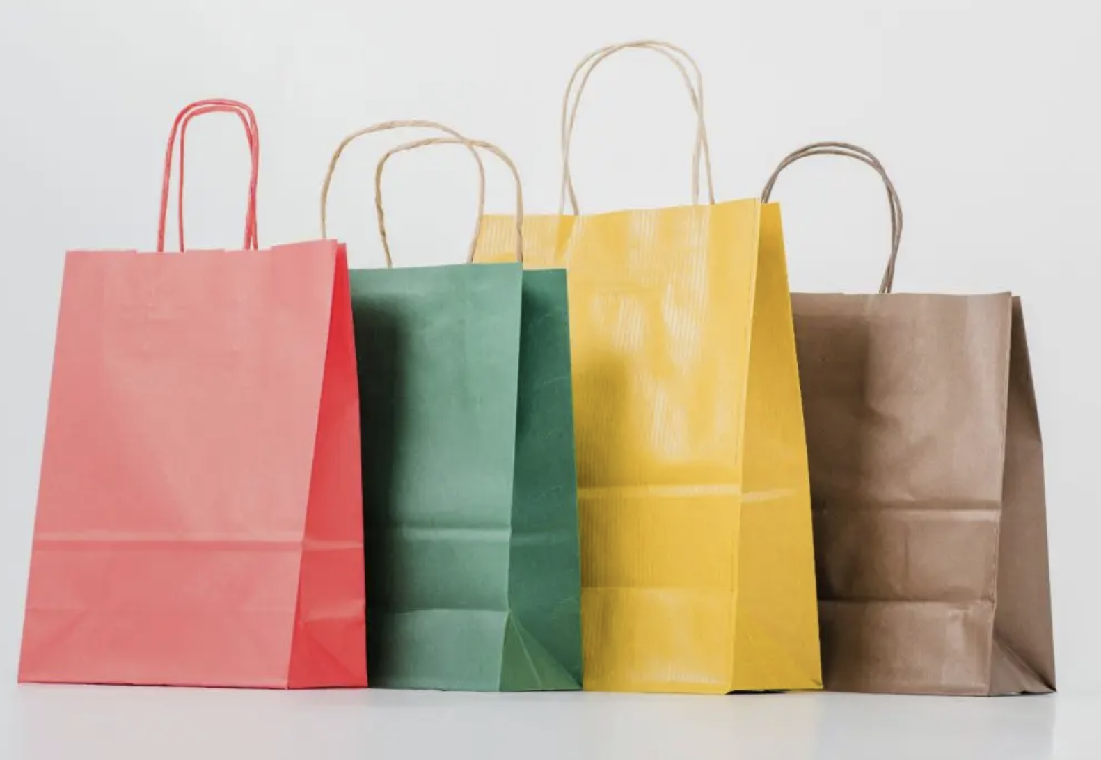 Bolsas de papel personalizadas de colores — Kraft, ecológicas y resistentes