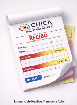 Talonario de recibos premium con impresión a color y diseño profesional.